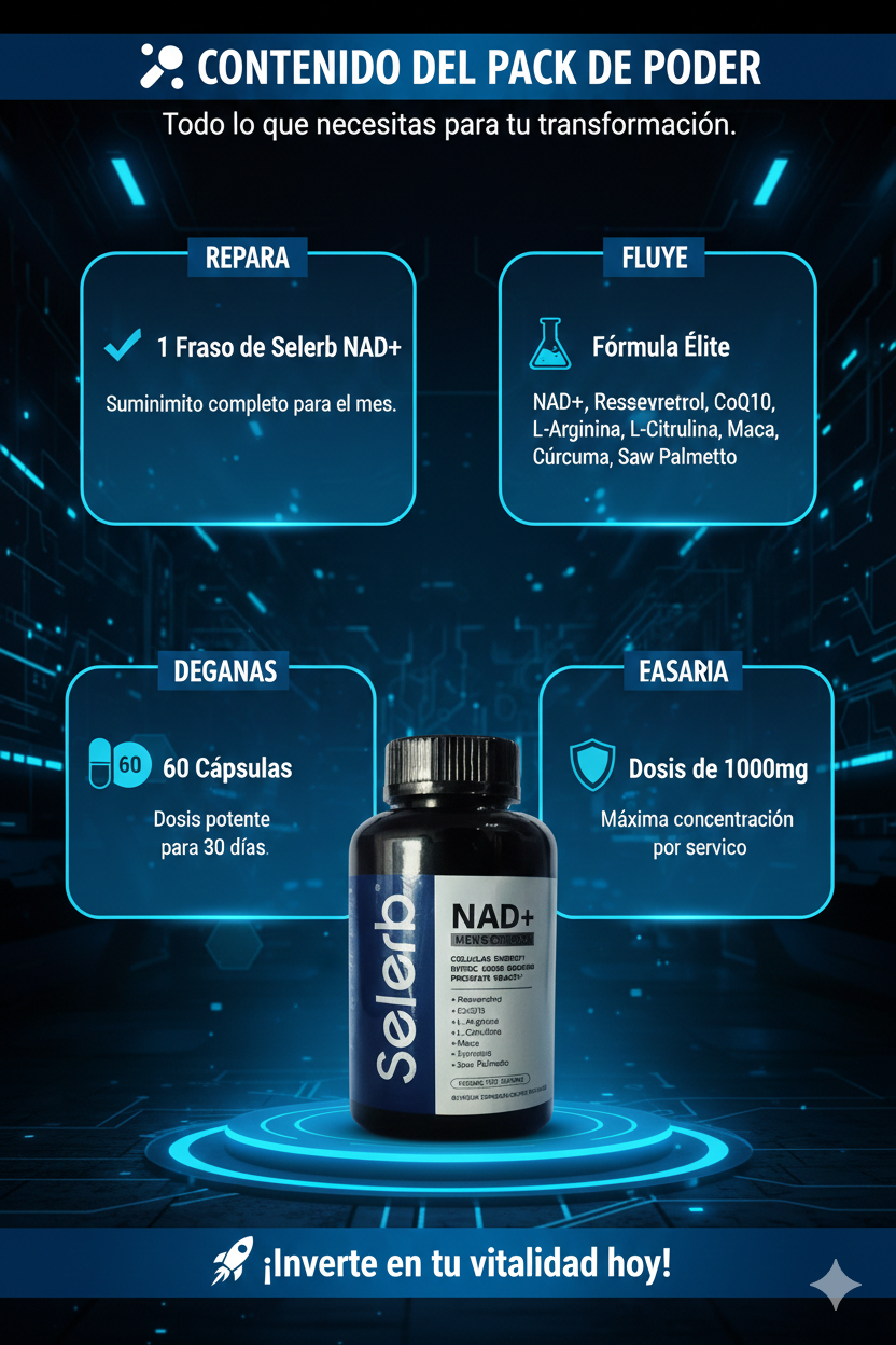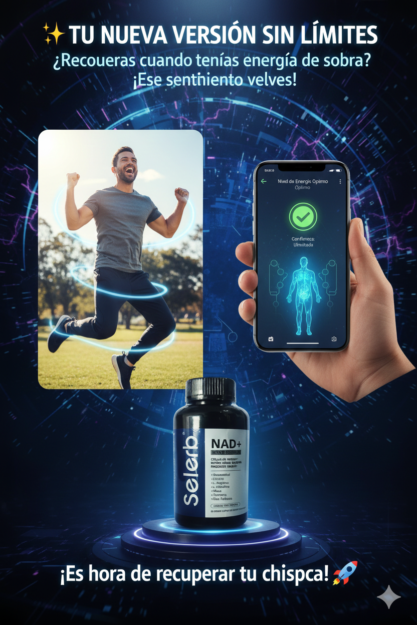 Con Selerb NAD+, ese sentimiento vuelve. Es el aliado perfecto para el hombre moderno que busca longevidad activa. No te conformes con "sobrevivir" al día; Dominalo con una fórmula que entiende tus necesidades biológicas. ¡Es momento de recuperar tu chispa! 🚀
