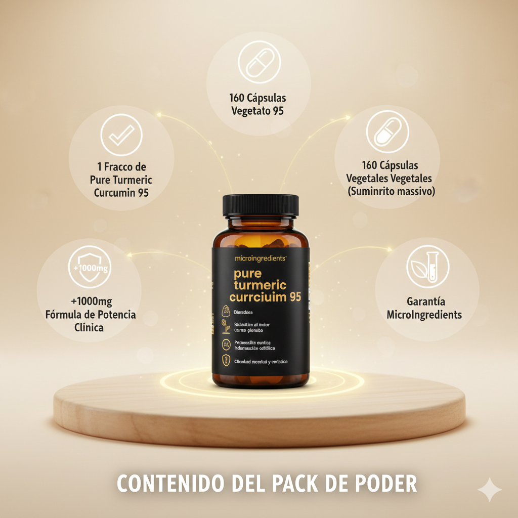 * 95% Curcuminoides: La concentración más alta para garantizar un efecto real y duradero.