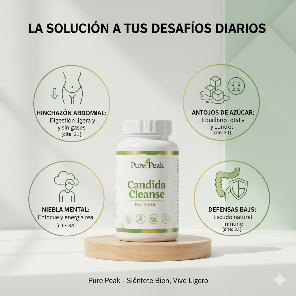 ¿Te sientes hinchado, con fatiga inexplicable o con antojos constantes de azúcar? Podría ser un desequilibrio en tu flora intestinal. Pure Peak Candida Cleanse es una fórmula avanzada diseñada para limpiar tu sistema, eliminar el exceso de levaduras y restaurar la armonía digestiva.